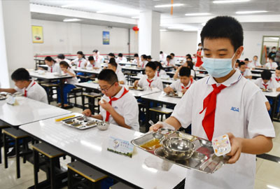 到(dào)開(kāi)餐時(shí)間(jiān)前10分(fēn)鐘(zhōng)所有(yǒu)供餐的(de)人(rén)員(yuán)必須換上(shàng)整潔的(de)服裝≤戴好(hǎo)工(gōng)帽、口罩和(hé)手套。